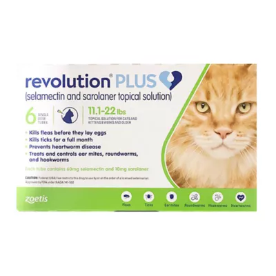 Usage: *For complete Description, please review the full prescribing information in the manufacturer package insert. Revolution Plus Topical Solution for Cats should be applied topically year–round at monthly intervals, or as otherwise directed by your veterinarian. Manufacturer Dosage and Administration: The recommended minimum dosage is 2.7 mg selamectin per pound (6 mg⁄kg) of body weight and 0.45 mg sarolaner per pound (1 mg⁄kg) of body weight. Administer the entire contents of a single tube (or two tubes in combination for cats weighing over 22 pounds) of Revolution Plus topically in accordance with the labeled product weight ranges. A veterinarian or veterinary technician should demonstrate or instruct the pet owner regarding the appropriate technique for applying Revolution Plus topically to cats and kittens prior to first use. Revolution Plus requires no gloves. Apply in just 3 simple steps: Step 1: Press cap until you hear a ââ¬ÅCLICKââ¬Â. Hold tube upright and press the cap to puncture the seal. Remove cap and make sure tip is open. Step 2: Part neck hair and squeeze tube. Part the fur at the base of your cat's neck and touch tube tip to visible skin. Squeeze tube 3 or 4 times in one spot until empty. Step 3: Glide tube, lift, and discard. Keeping the tube squeezed, glide it along the skin and away from the liquid, then lift off. Ensure the tube is empty before throwing it out. Do not massage the product into the skin. Due to alcohol content, do not apply to broken skin. Avoid contact between the product and fingers. Do not apply when the hair coat is wet. Stiff hair, clumping of hair, hair discoloration, or a slight powdery residue may be observed at the treatment site in some cats. These effects are temporary and do not affect the safety or effectiveness of the product. Discard empty tubes in your ordinary household trash.